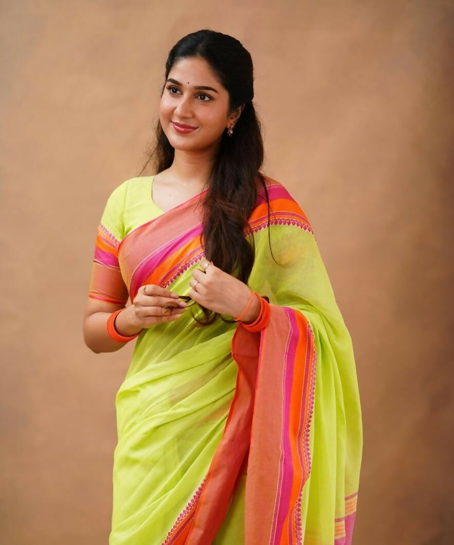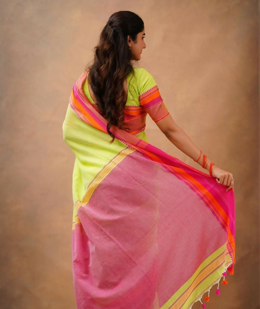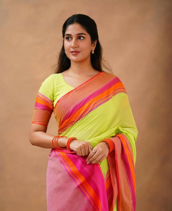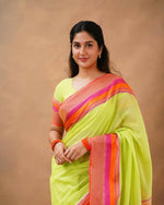 Exclusive Collection Light Green Beautiful Khadi Cotton Handloom Saree
