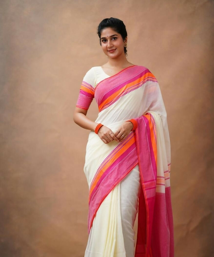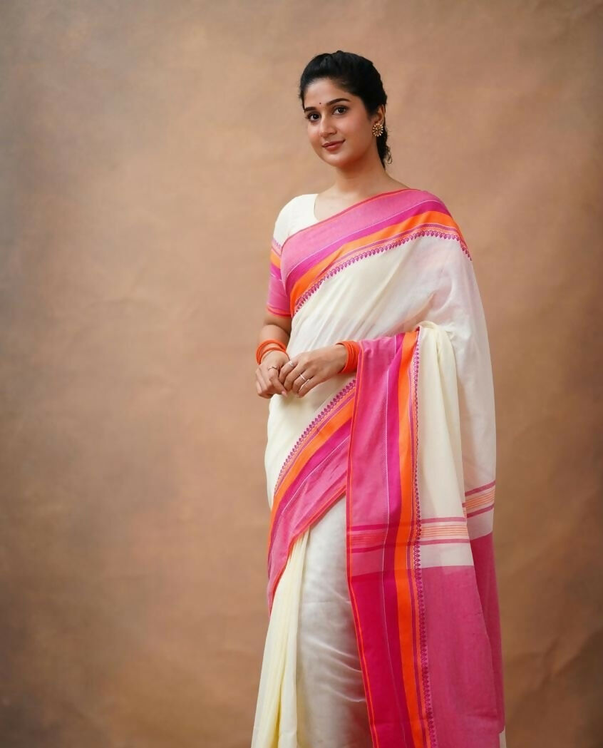 Exclusive Collection Off White Beautiful Khadi Cotton Handloom Saree