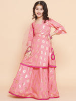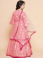 Peach Foil Printed Lace Work Choli, Has A V-Neck With Three Quarter Sleeves, Peach Foil Printed Lace Work Lehenga With Peach Net Dupatta Lace Detailing.