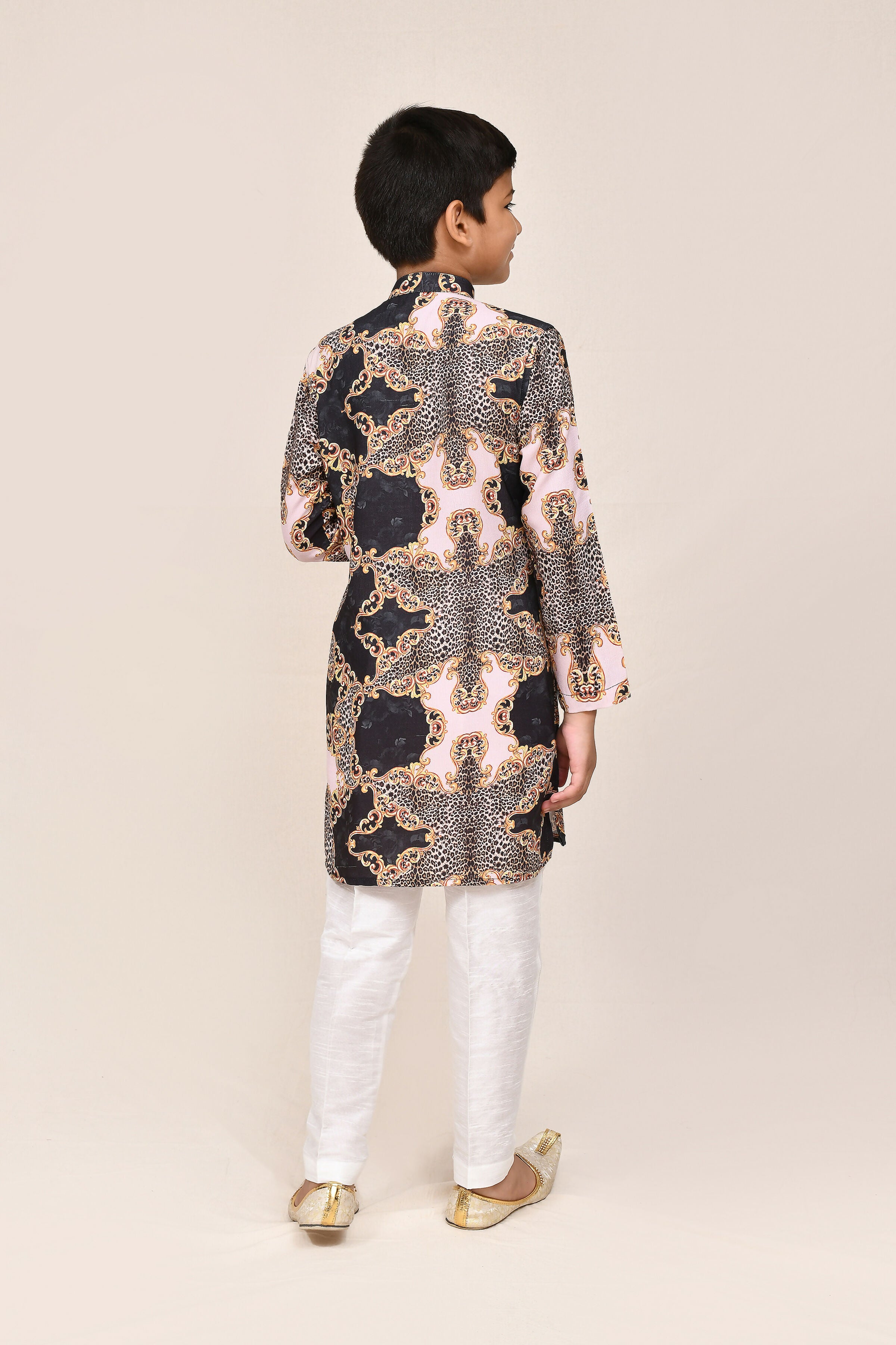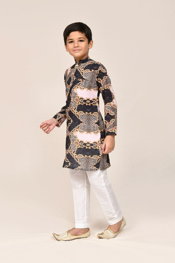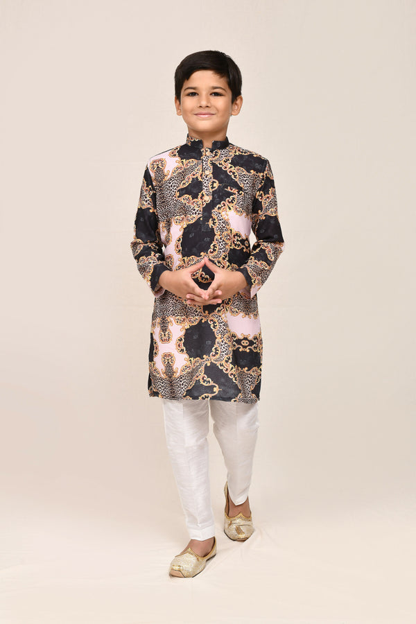 Joban Fashion Cotton Silk Black Kurta With Straight Fit Pant - 1Y-2Y