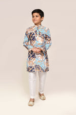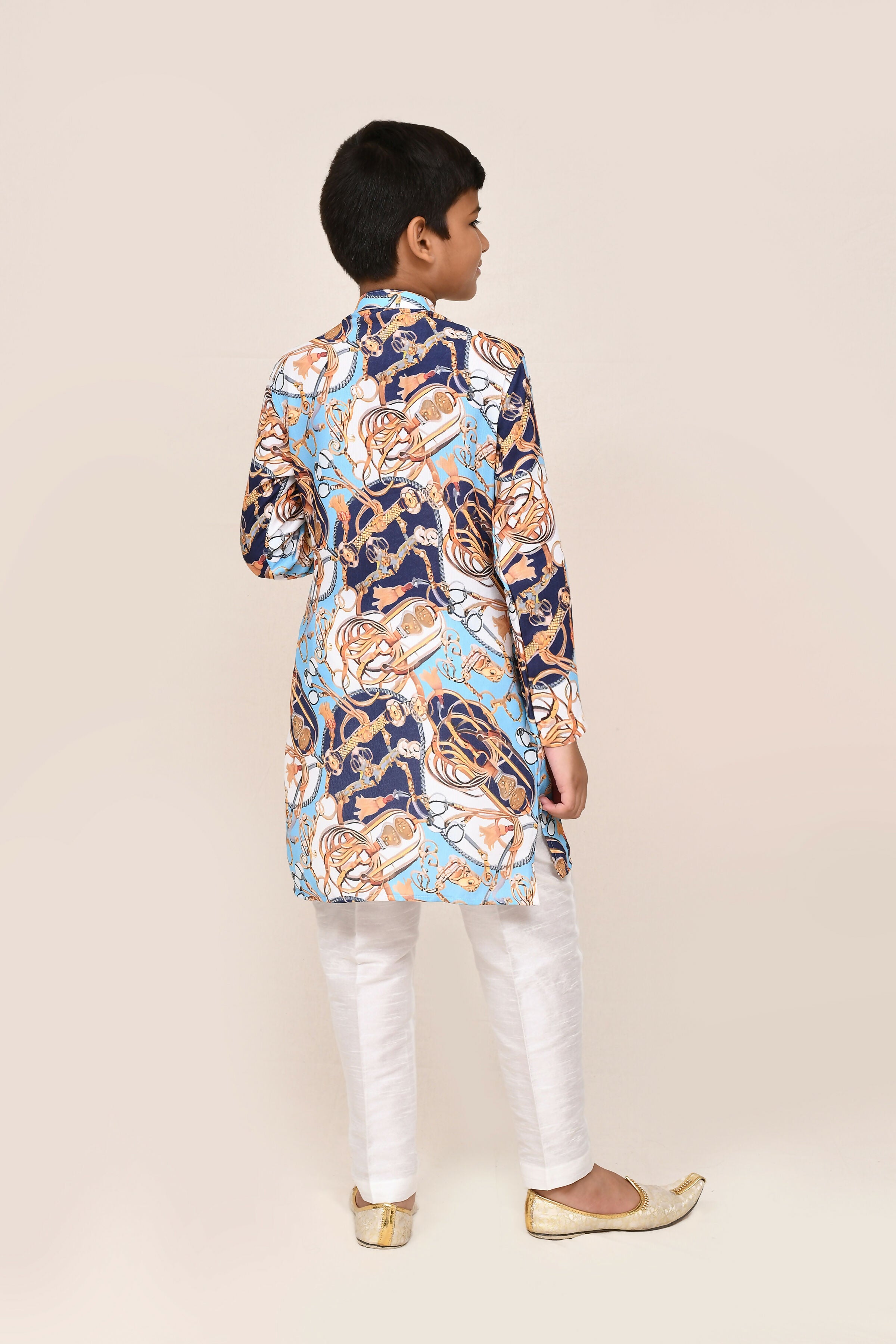 Joban Fashion Cotton Silk Blue Kurta With Straight Fit Pant - 1Y-2Y