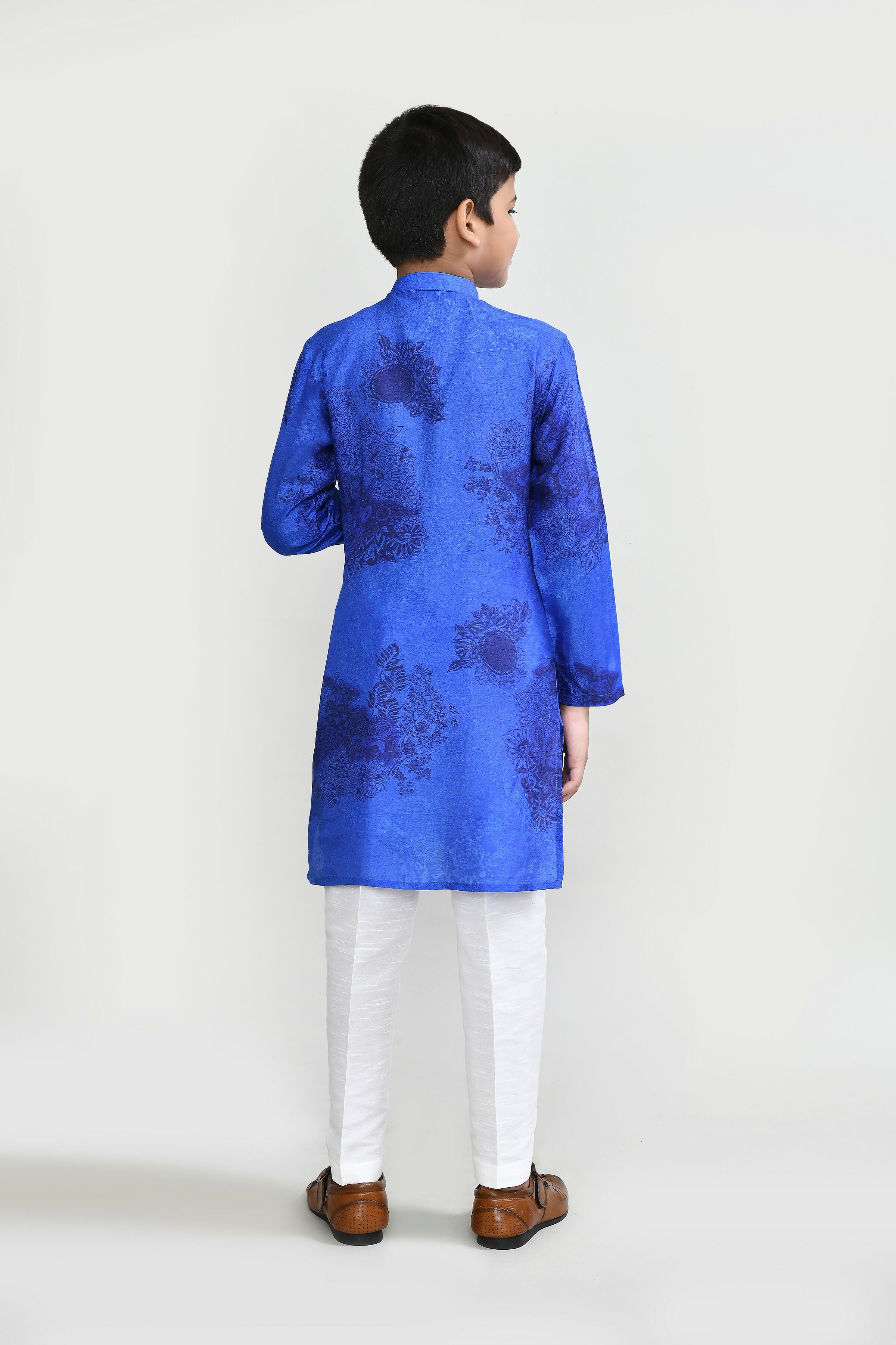 Joban Fashion Cotton Silk Royal Blue Kurta With Straight Fit Pant - 1Y-2Y