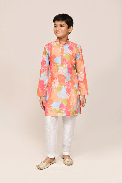 Joban Fashion Linen Cotton Multicolor Kurta With Straight Fit Pant - 1Y-2Y