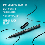 • It’s true, the world has changed. Beauty is now in the eye of the one wearing winged liner. Presenting the Eyeconic Pro Brush Liner - for those who like everything “Pro” standard. Mastering winged eyes is now easy with its eyeliner brush that comes with a precise pro brush tip, which gives a lot of scope to wing like a PRO. Its steady grip, easy-glide application and an intense colour pay-off ensures the fashion drama never leaves the room. What’s more? Its Flake proof for up to 36 hrs and gives you that perfect matte finish. This eyeconic liner is waterproof and oops-proof too. Ophthalmologically tested, it’s everything you have ever dreamed of and more. Use the Eyeconic Pro Brush Liner to create unique winged eyeliner looks that fit your eye-shape perfectly