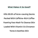 • Gentle on the skin, hard on the acne! Coffee Foaming Face Wash has a lightweight texture and it kills 99.9% of acne-causing germs effortlessly. It is a natural face wash packed with coffee & caffeine. It reduce oil and gives you fresh & glowing skin. This is the best face wash for oily skin and suitable for all skin types. Coffee Foaming Face Wash has the aroma of roasted coffee beans and spicy cinnamon that you can never get enough of.