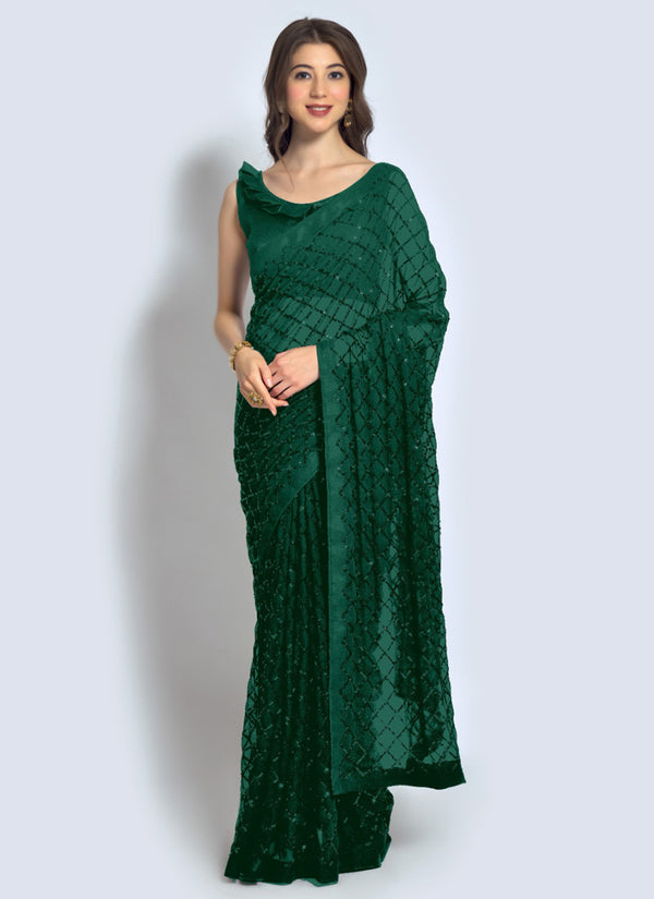 Vegaa Fashion Green Georgette Sequence Party Wear Saree
