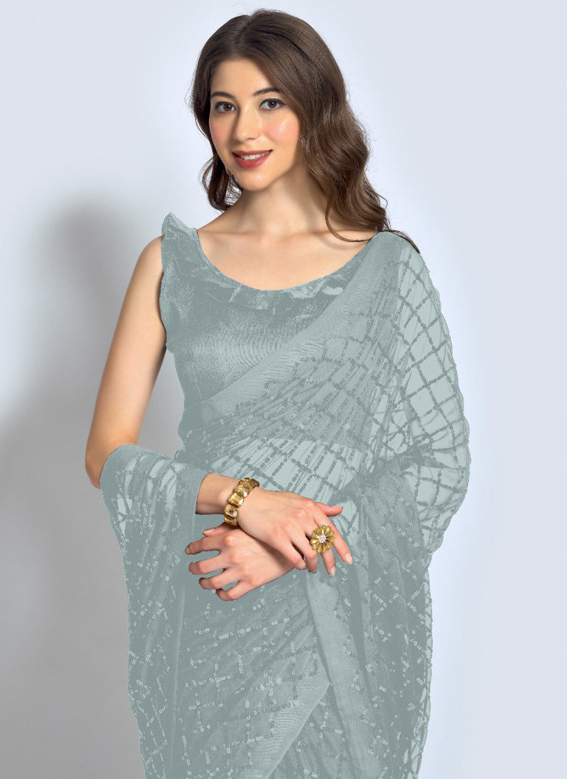 Vegaa Fashion Grey Georgette Sequence Party Wear Saree