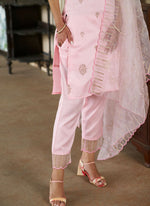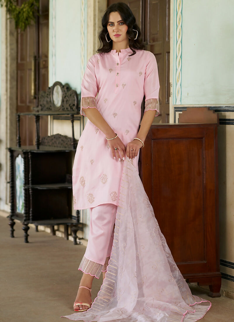 Add a touch of softness and charm to your daily wardrobe with this baby pink salwar suit from Vellora.Crafted from a smooth silk blend fabric, this readymade suit features delicate embroidery on the neckline and sleeves, perfectly balancing comfort with subtle elegance.The gentle baby pink shade offers a fresh, feminine appeal, ideal for casual outings, office wear, or family gatherings. With a matching bottom and dupatta included, this set is designed for effortless style and comfort.If you desire a lightweight, graceful outfit for everyday wear, this Vellora creation is an excellent choice.