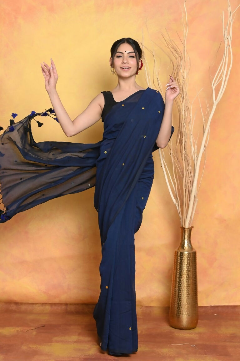 Very Much Indian Pure Mul Cotton Handloom Saree - Dark Blue - Distacart