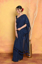 Very Much Indian Pure Mul Cotton Handloom Saree - Dark BlueSaree Details:   Delicate, Handloom, Eco- Conscious Mul Cotton Sarees are sheer, light a...