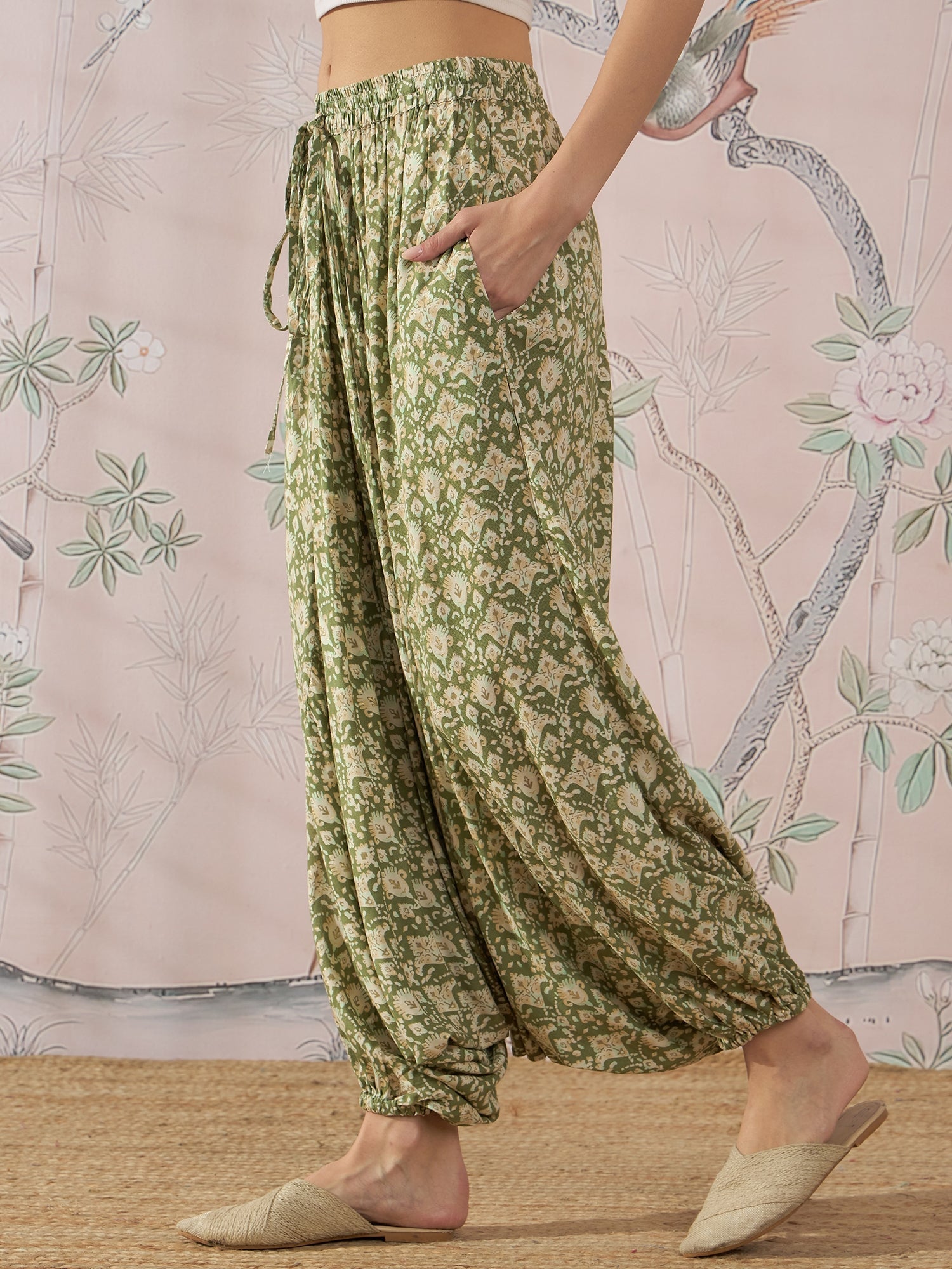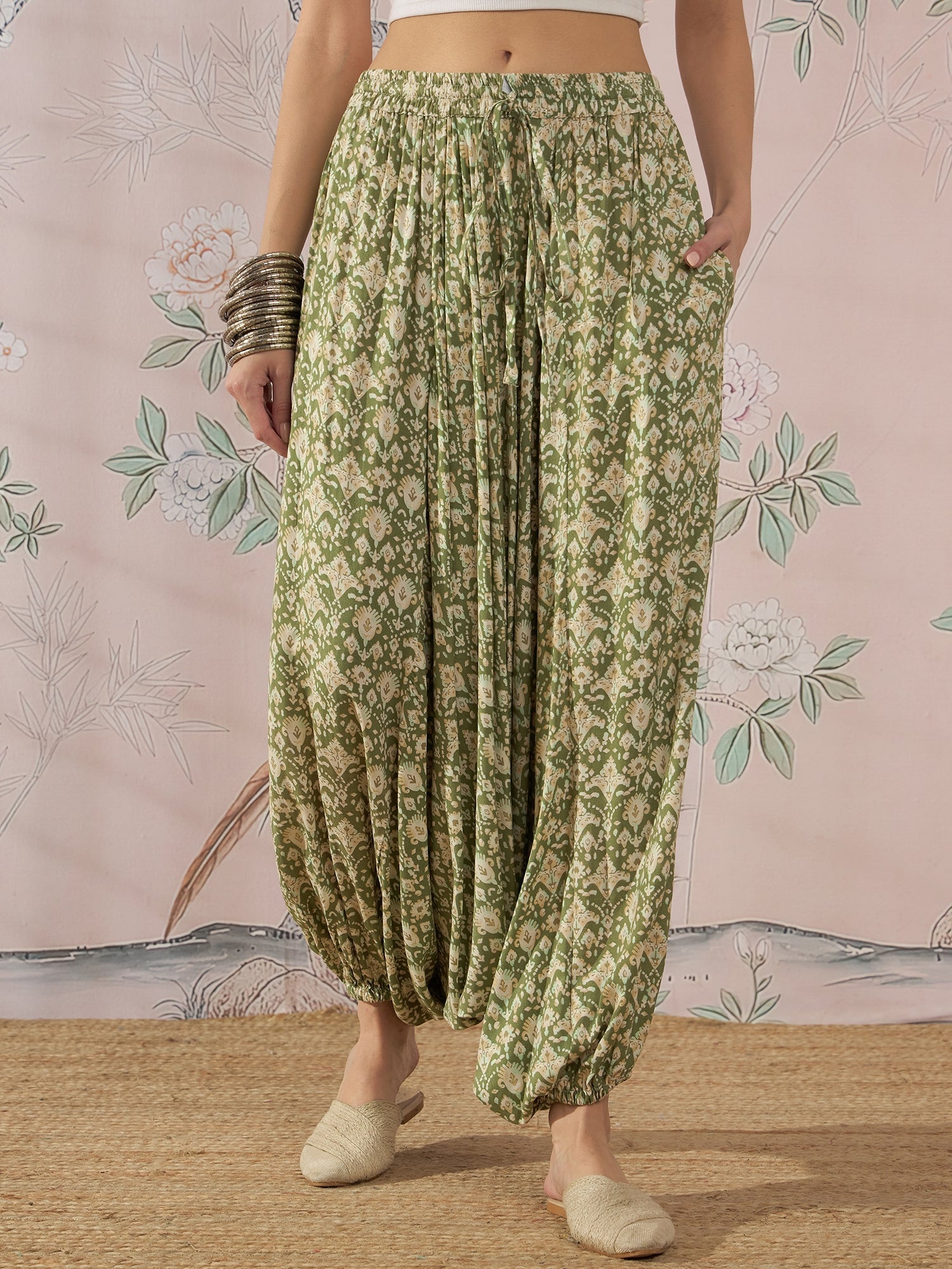 InWeave Apple Green Ikkat Print Harem Pant - Distacart