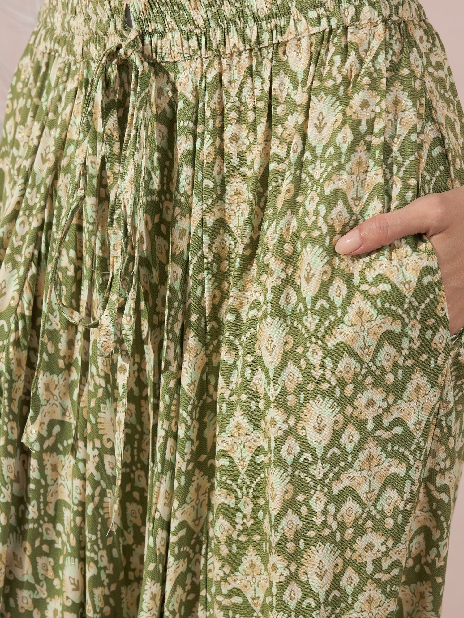 InWeave Apple Green Ikkat Print Harem Pant - Free Size