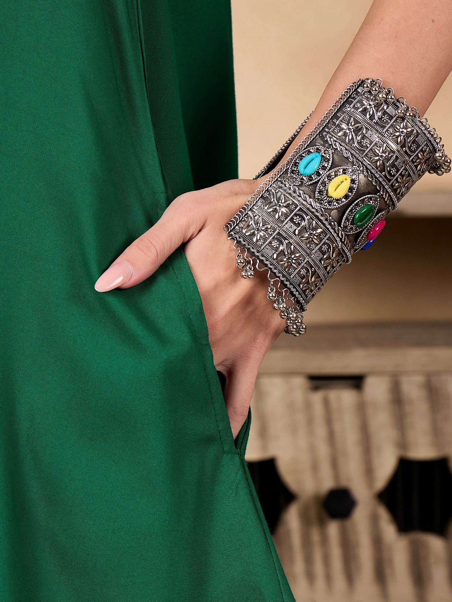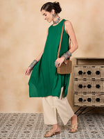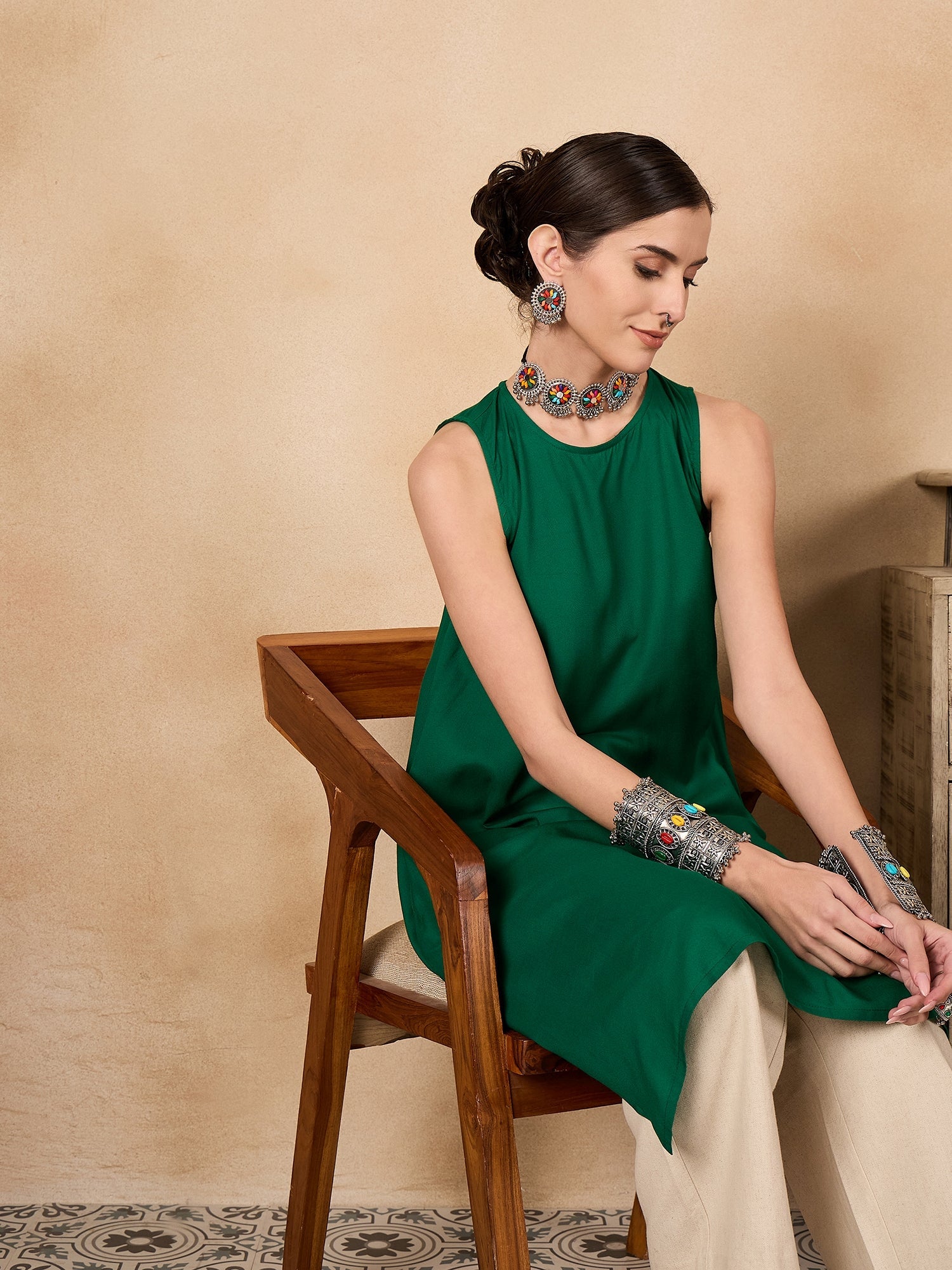 InWeave Forest Green Short KurtaThe Kurta is crafted from best of Indian fabrics. Style it with Oxidised jewelery and juttis and you are good to go...