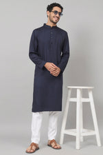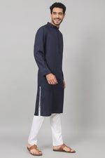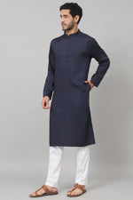 Giza Cotton Navy Blue Plain Kurta by Hilo Design