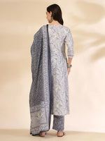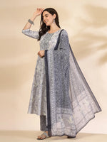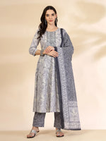 Yufta Grey Pure Cotton Anarkali Dupatta Pant Set Product Details  Grey and white coloured kurta with trousers and dupattaKurta design: Floral pri...