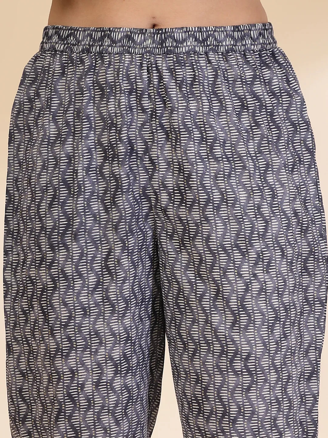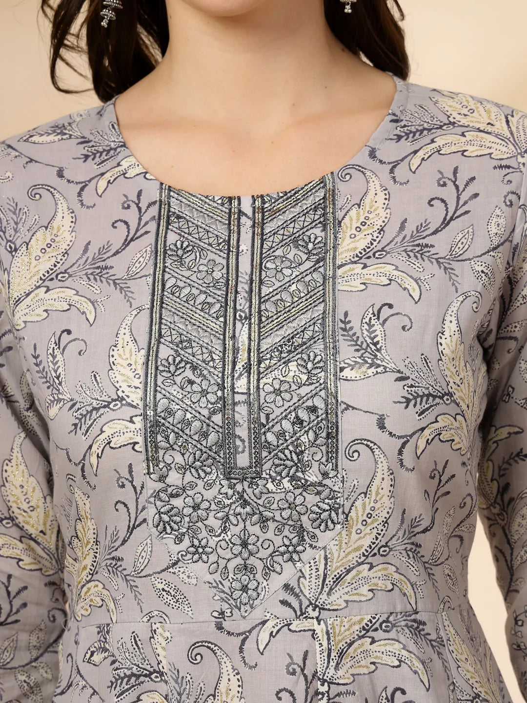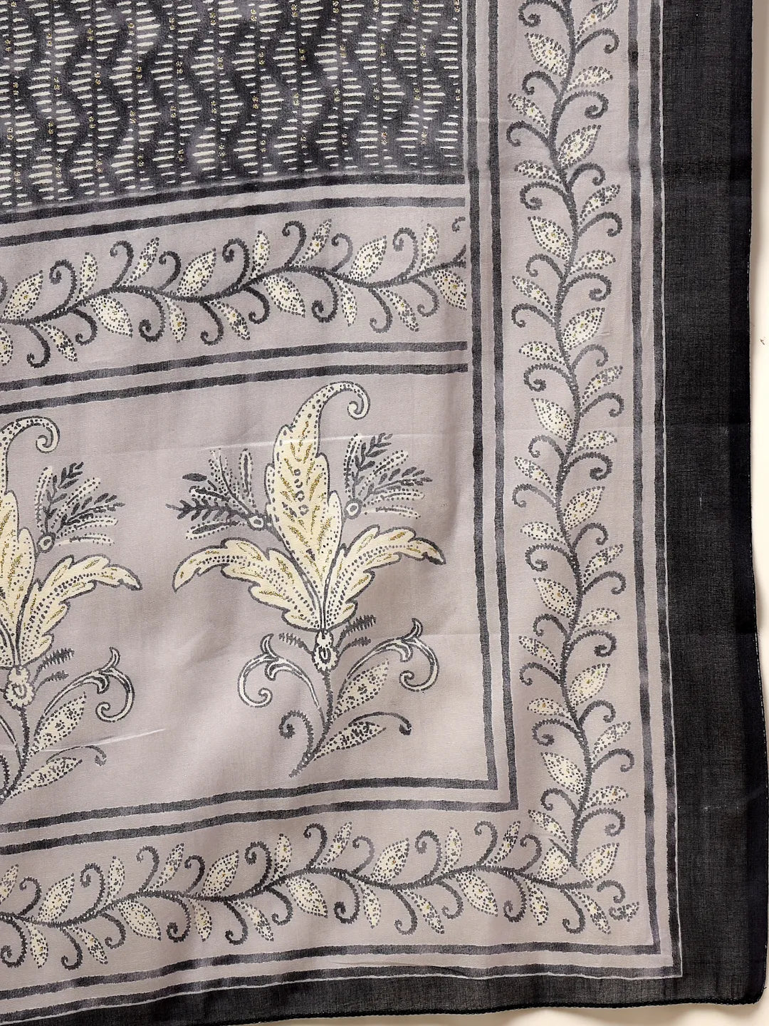 Yufta Grey Pure Cotton Anarkali Dupatta Pant Set