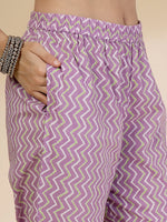 Lavender, white and green printed Kurta with Trousers & dupatta
