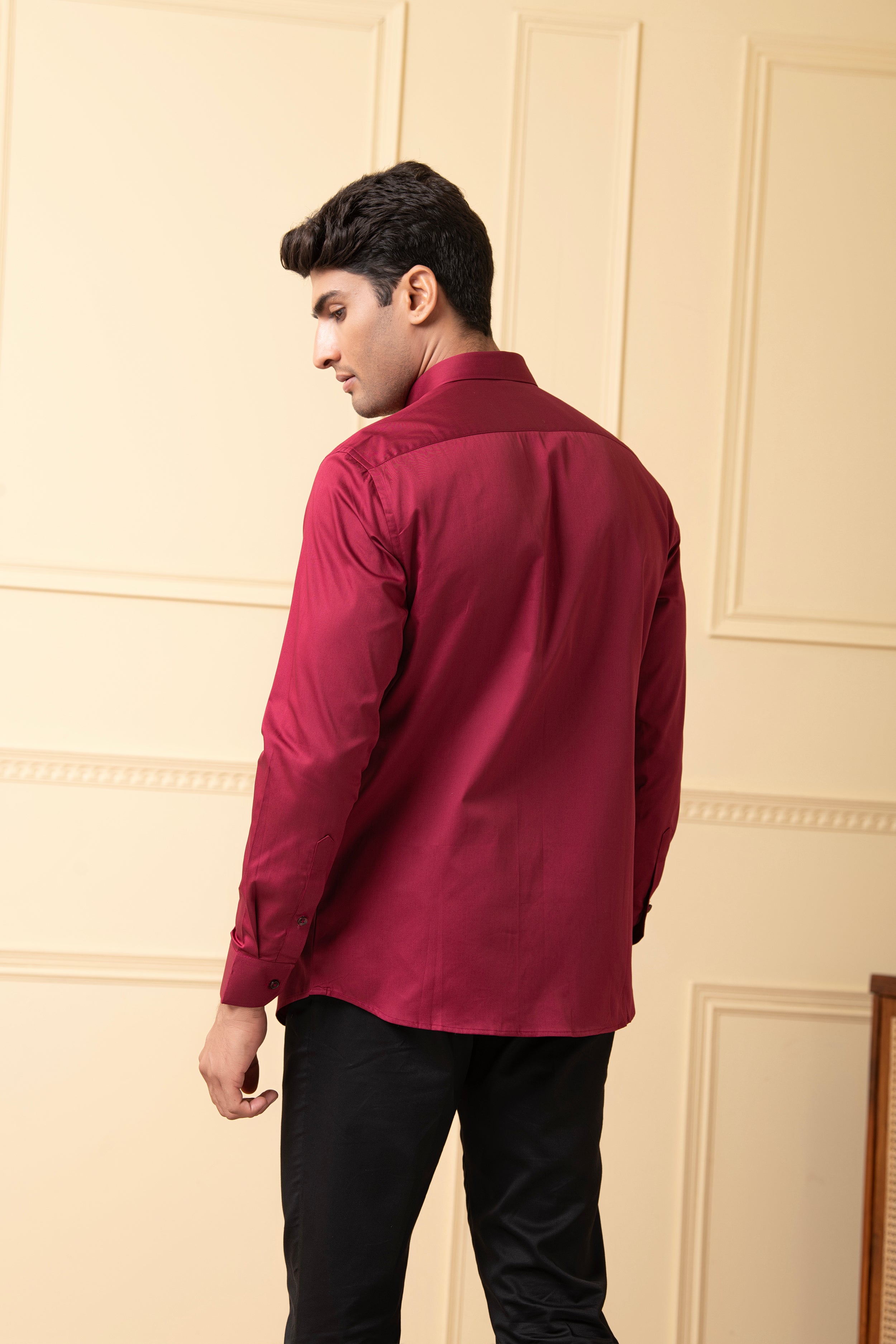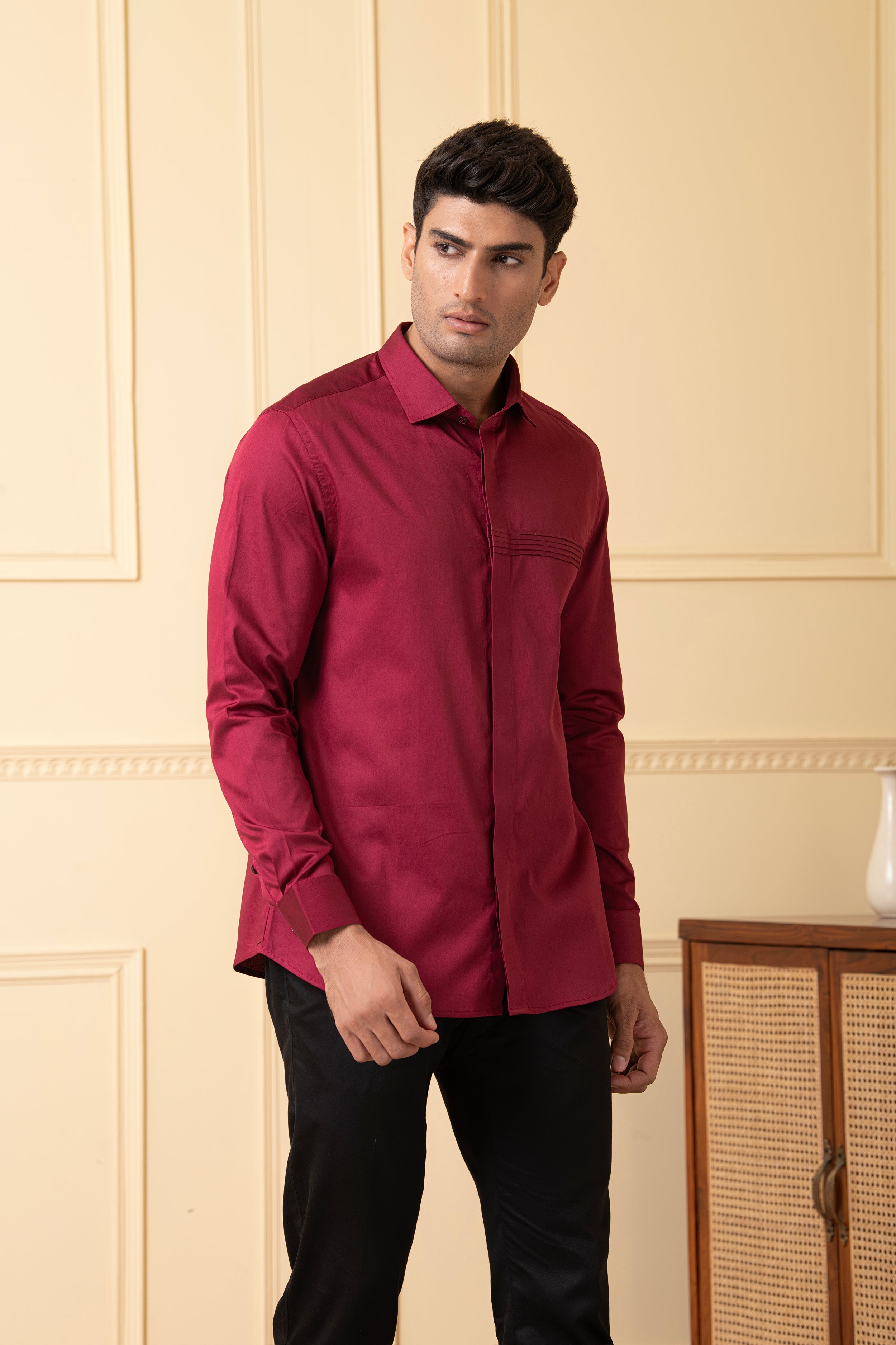 The intricate pintuck detailing adds a touch of elegance, while the concealed buttons maintain a seamless and polished look. Whether you're dressing up for a formal occasion or aiming for an effortlessly chic ensemble, the maroon shirt guarantees a captivating presence.