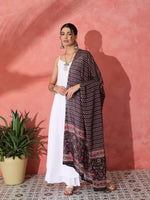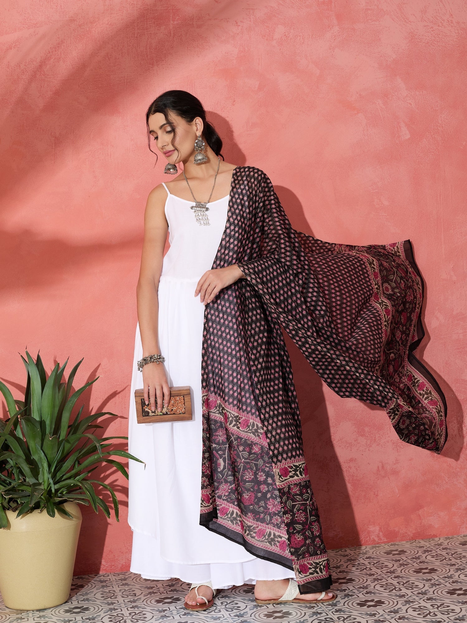 InWeave White Strappy Set With Black Pink Ethnic Print Cotton Dupatta