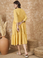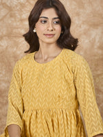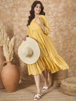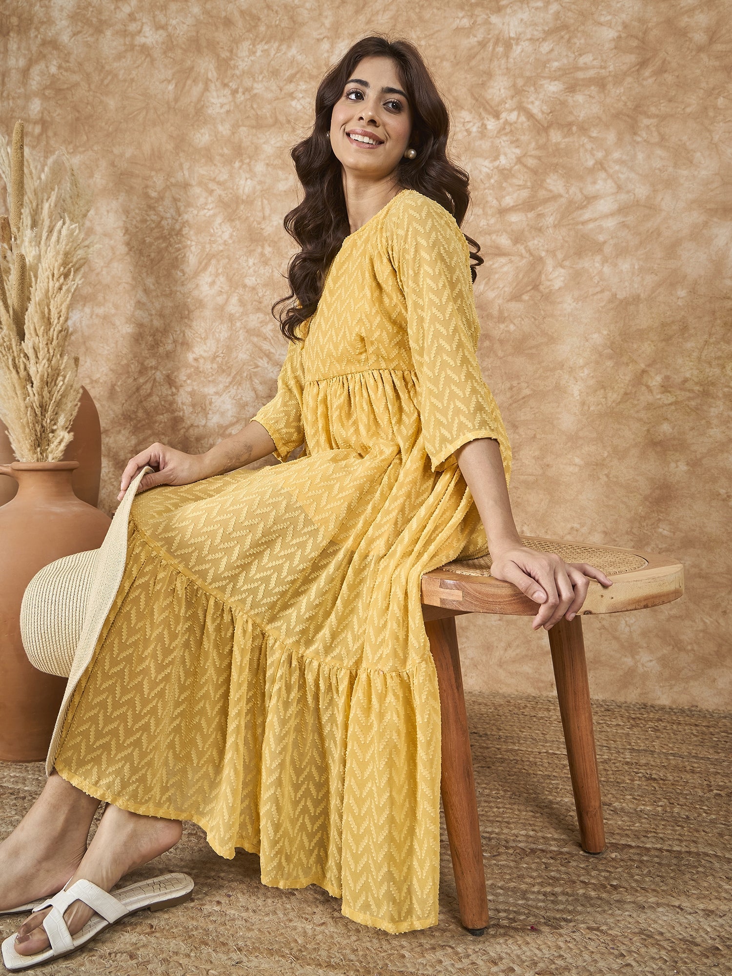 A simple yet elegant yellow georgette dress with a round neckline. This dress combines comfort and style, ideal for a sophisticated and relaxed look.
