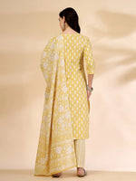 Yufta Yellow Pure Cotton Floral Lace Work Kurta Dupatta Pant Set