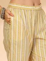 Yufta Yellow Pure Cotton Floral Lace Work Kurta Dupatta Pant Set Product Details  Yellow and white printed Kurta with Trousers &  dupattaKurta...