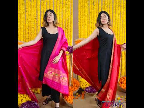 Very Much Indian Rajsi - Handloom Pure Silk Paithani Dupatta With Beautiful Zari Work and Handwoven Buttis - PinkHigh Quality Pure Silk Paithani Du...
