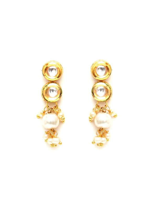 Kundan Earrings with Pearl Drops (Gold) - Ruby Raang - Distacart