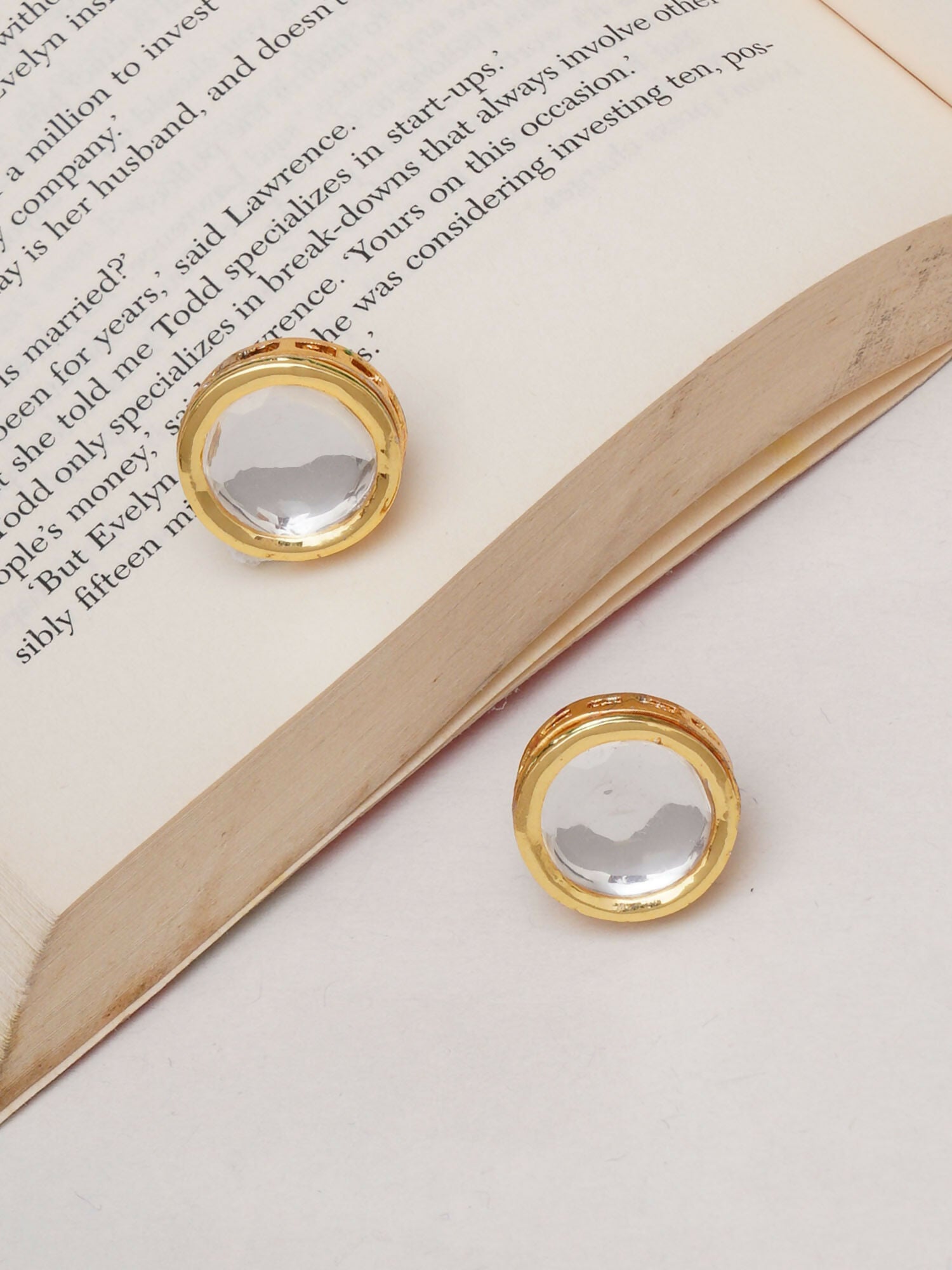 Kundan Studs (Gold) - Ruby Raang Dimensions:  Length 2 cm /Width Earring-2cm Color: Gold Material: Faux Stones, Brass, Faaux Kundan Legal Discl...
