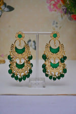 Chandbali Design: The earrings feature a classic and timeless Chandbali design, characterized by a graceful crescent moon shape. This traditional Indian design adds an aura of sophistication and elegance to any ethnic wear ensemble.