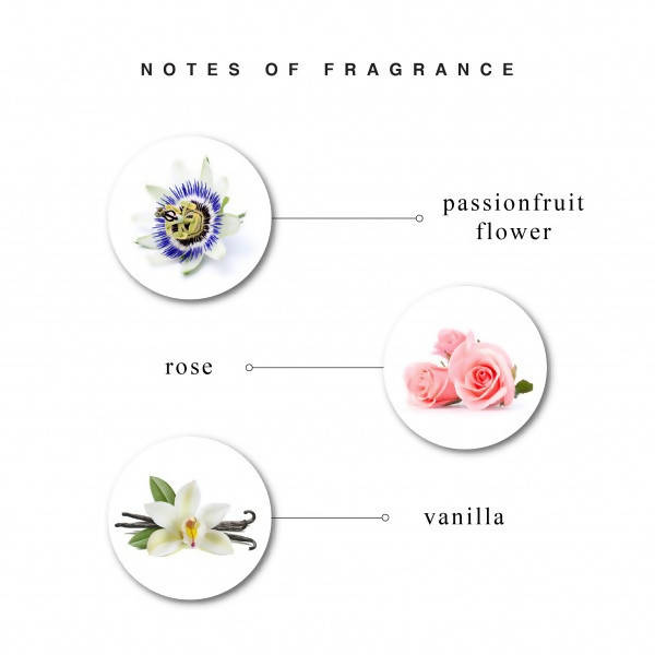 • The sensual, sweet smell of Passionfruit flowers is blended with the classic notes of Roses and exotic Irises. The fragrance is designed to make a woman feel bold, and inspire a sense of adventure and romance.