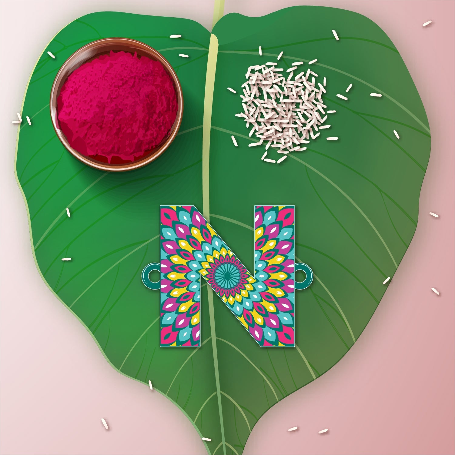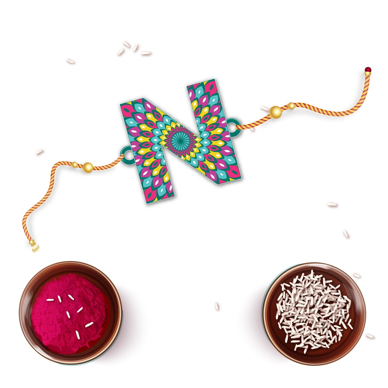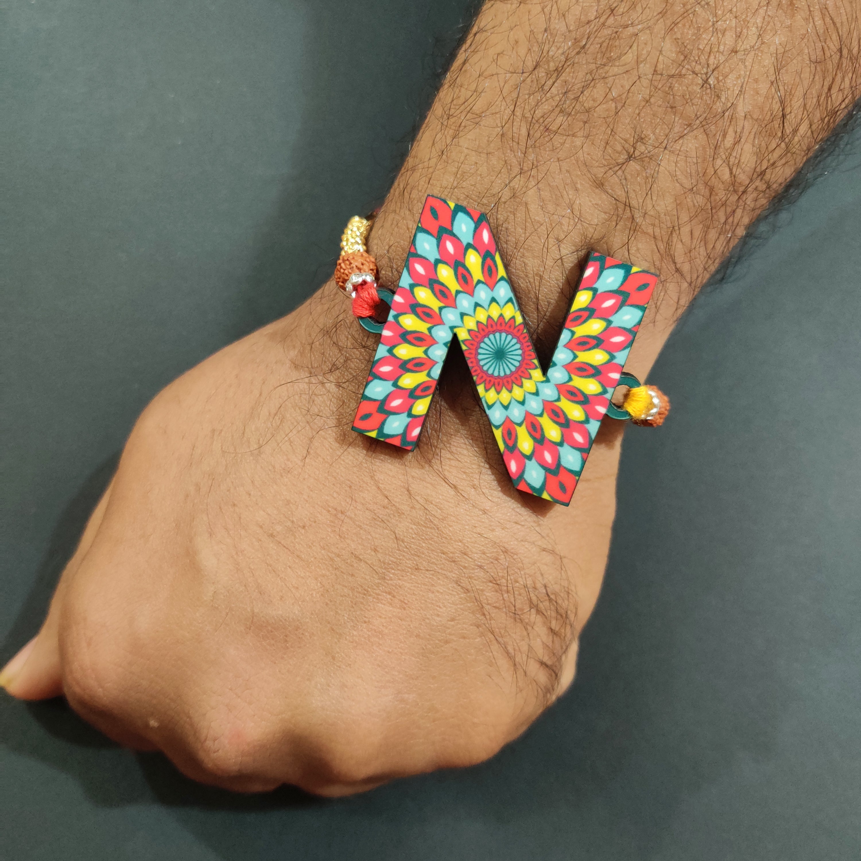 Indianvibez Alphabet N Wooden Rakhi - Kids Rakhi