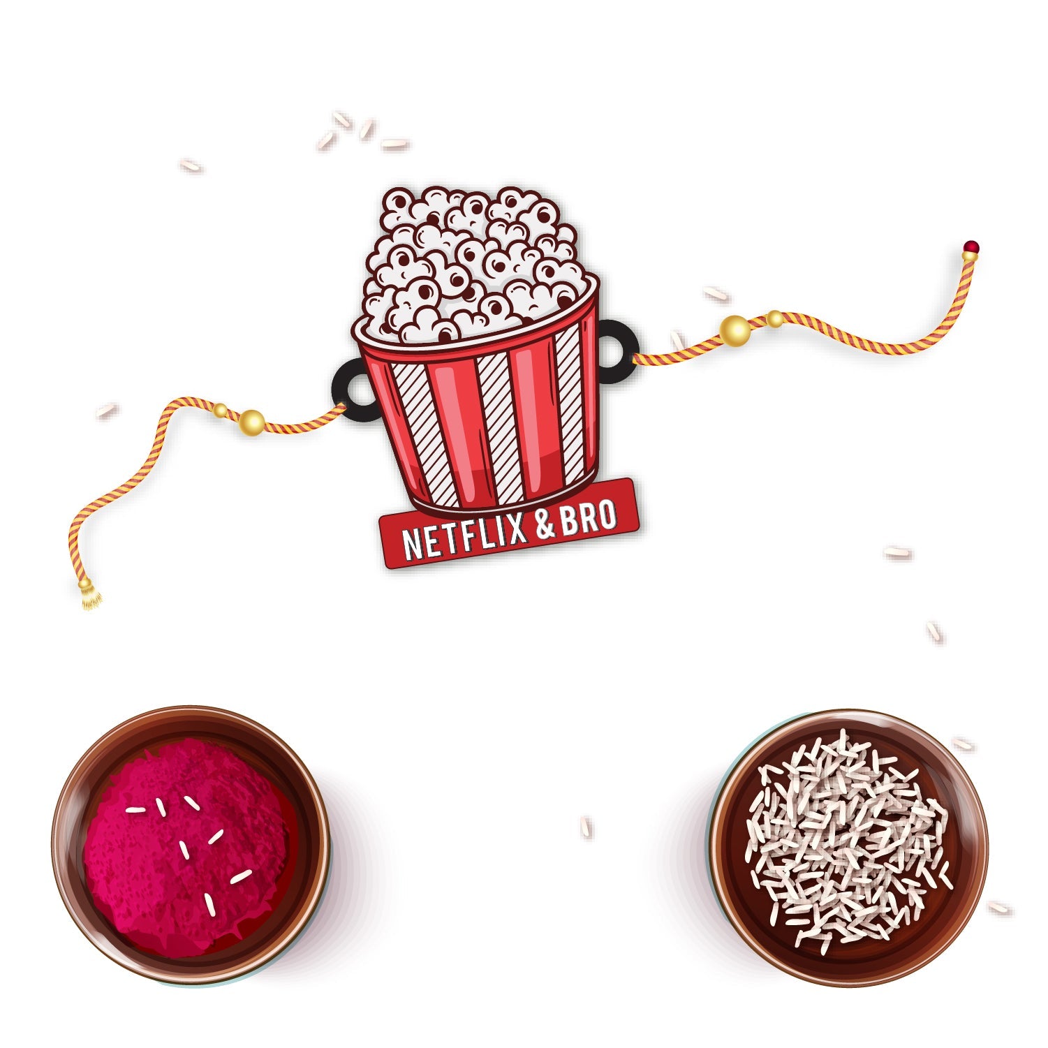 Indianvibez Netflix & Bro Wooden Rakhi with Rudraksha, Chill Bhai Rakhi, Shop India