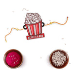 Indianvibez Netflix & Bro Wooden Rakhi with Rudraksha, Chill Bhai Rakhi, Shop India - Kids Rakhi