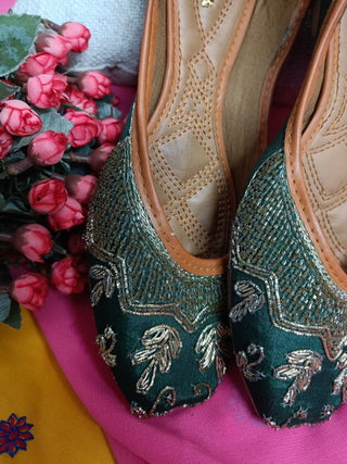 Desi Colour Women Indian Ethnic Footwear-Party Wear Green Dabka Work