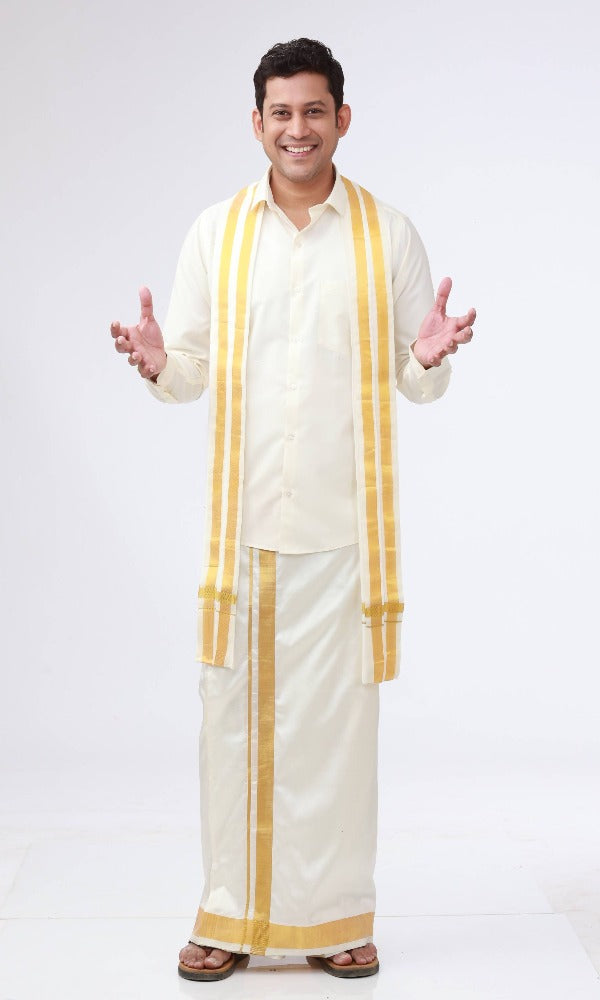 Rajavivaha Silk Dhoti - Cream - 50K (2 cm)