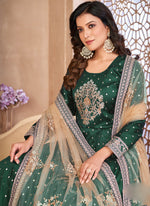 Vegaa Fashion Designer Green Tafeta Silk Embroidery Anarkali Suit