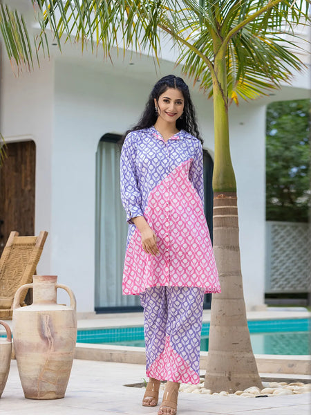 Pink & Purple Colour blocked mid-rise trouser, has slip-on closure and flared hem