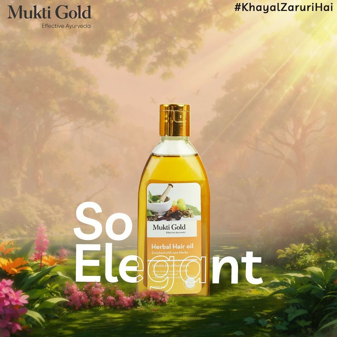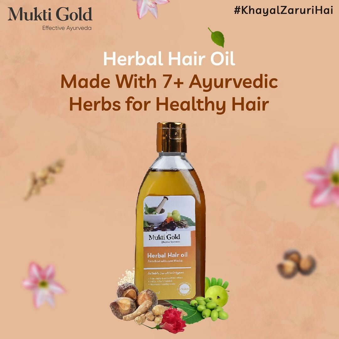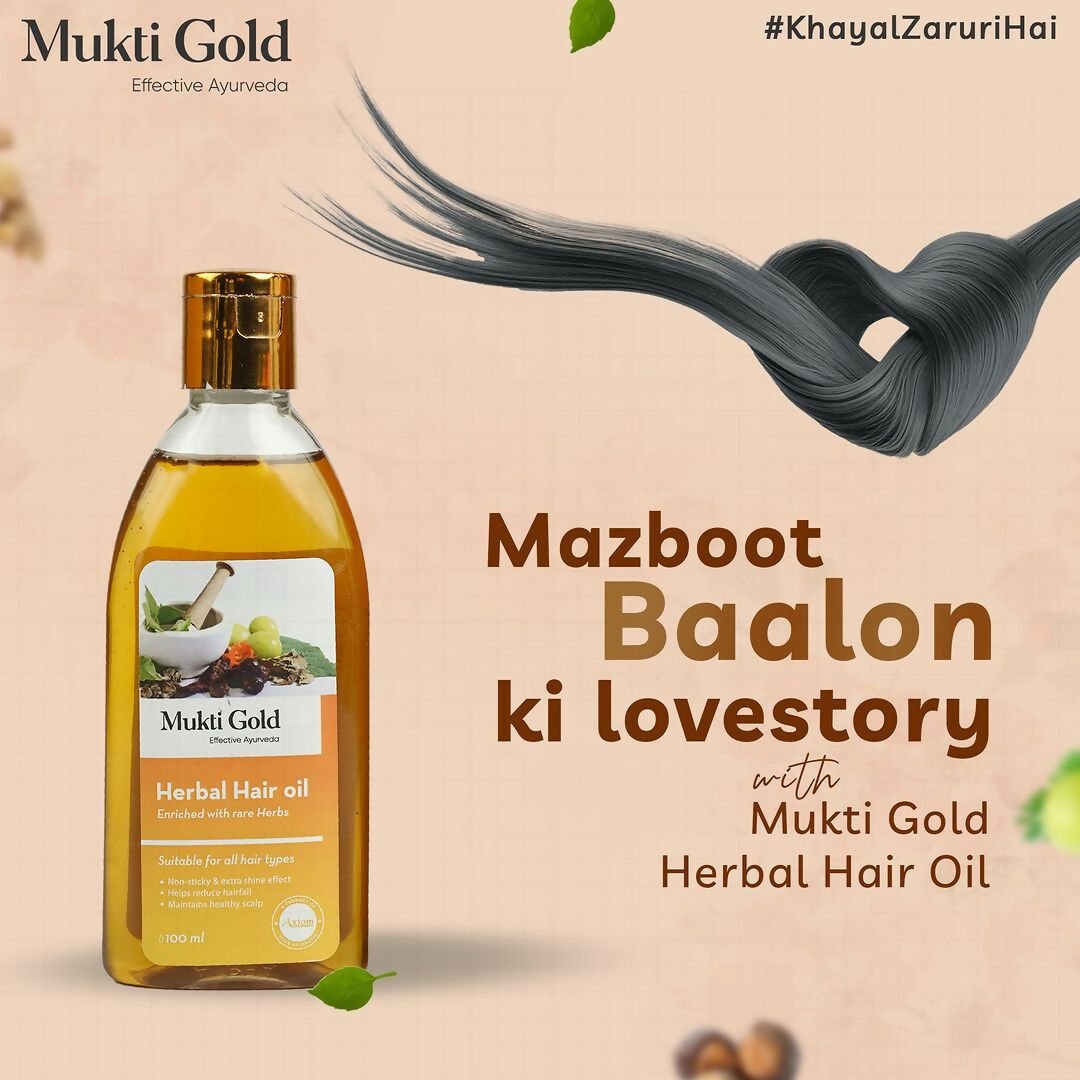 Axiom Mukti Gold Herbal Hair Oil is an Ayurvedic hair oil prepared with herbal ingredients such as Amla, Shikakai, Bhringraj, Brahmi, and Neem. This formulation is designed for daily hair care routines and is suitable for all hair types. The oil has a non-sticky texture and is formulated for easy application.