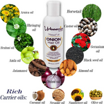 • Nourishing Natural 21 Onion hair oil which is empowered by pure oils of 21 natural exquisite herbs. Light weight hair oil is hydrating, moisturizing, strenghtening, scalp nourishing oil. Promotes hair growth, controls premature greying, prevents dandruff & reduce hair fall. Retain your lustrous hair with the regular use of magical formula which makes your hair stronger & thicker.