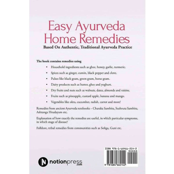 Easy Ayurveda Home Remedies offers interesting insights into how household ingredients can be used as a home remedy. Learn how turmeric, cumin, black pepper, honey, garlic, and black gram are not just used to prepare delicious food but also to prepare home remedial solutions. These remedies are often picked up from 5000 years old Ayurveda, like Charaka Samhita, Ashtanga Hrudayam and Sushruta Samhita. The book also provides an explanation of how these remedies work, under which symptoms and at what stage of the ailment. The book is interesting with the herbal remedies collected from folklore and tribal communities like Soliga and Guni.