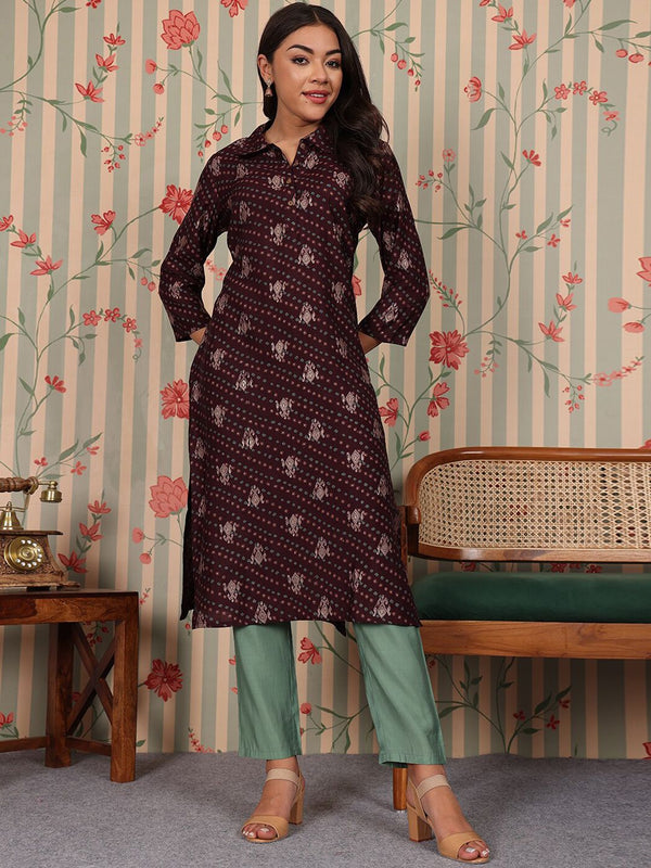 Brown & green printed Kurta with Trousers