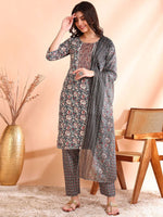 Grey & red ,beige printed Kurta with Trousers with dupatta