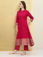 Pink solid Kurta with Trousers with dupatta