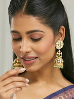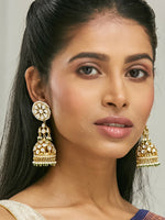 Nuyug 22K Gold-Plated Kundan Stone Studded & Pearl Beaded Dome Shaped Jhumkas