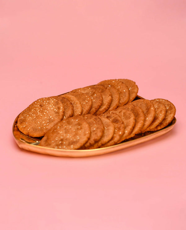 • Rice Flour (52%), Jaggery (34%), White Till, Green Cardamom Powder, ghee, Refined Palm Oil.