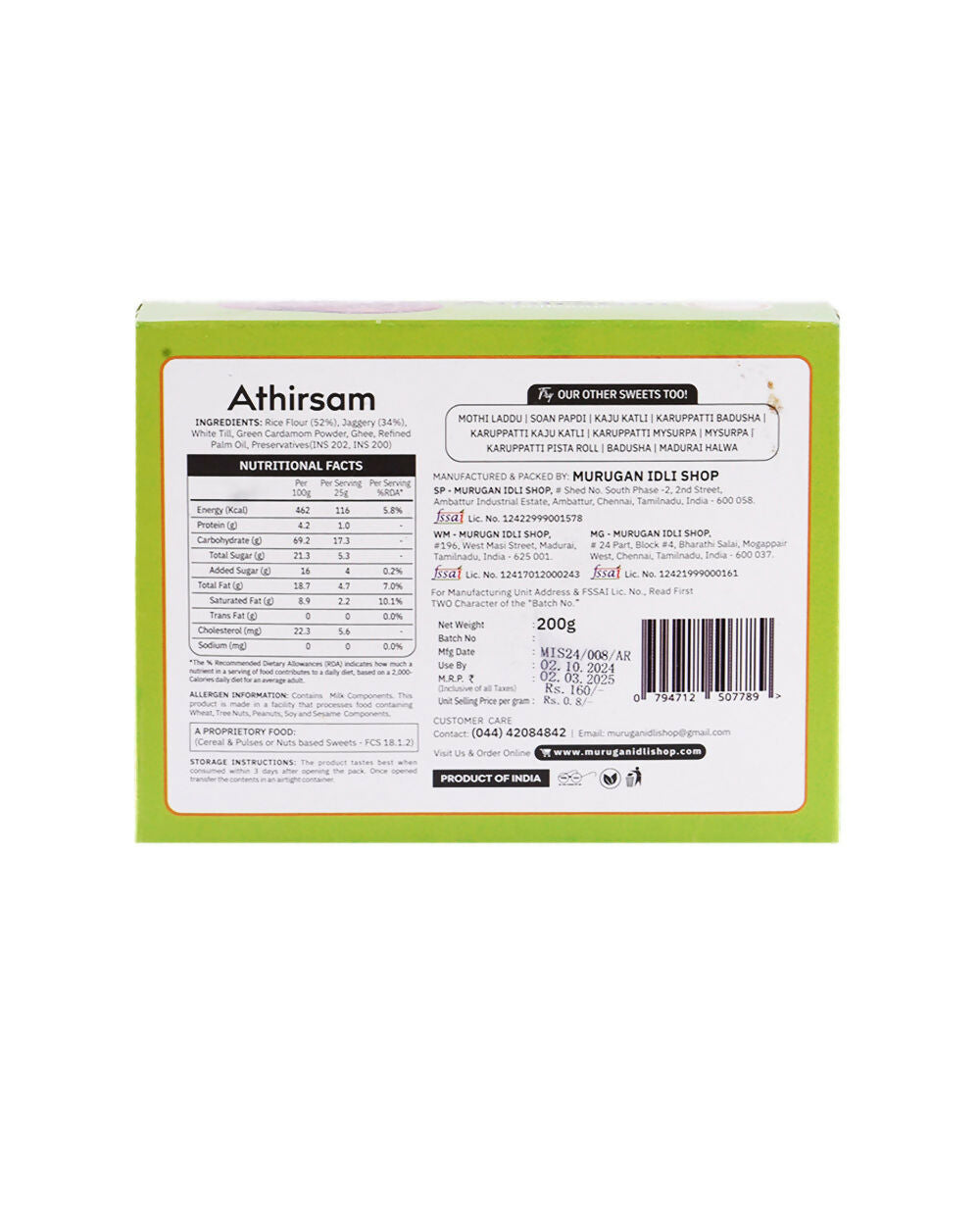 Murugan Idli Athirsam: Murugan Idli Athirsam is a traditional Indian sweet made using age-old preparation methods. It features a round, deep-fried ...
