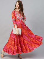 Ishin Red Embellished Maxi Dress Product Details Red and Orange printed maxi dress, has a round neck, and flared hem Size & Fit Semi-Fit...