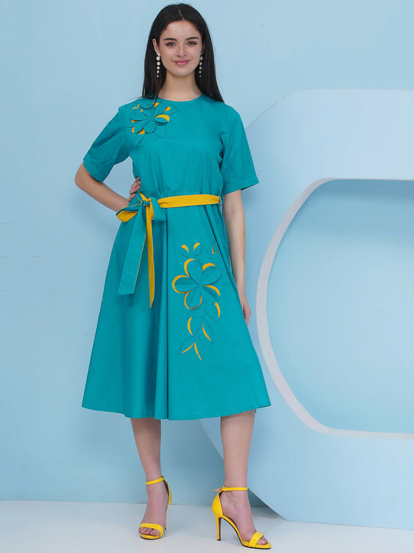 Joban Fashion Teal Blue Dress with Belt
