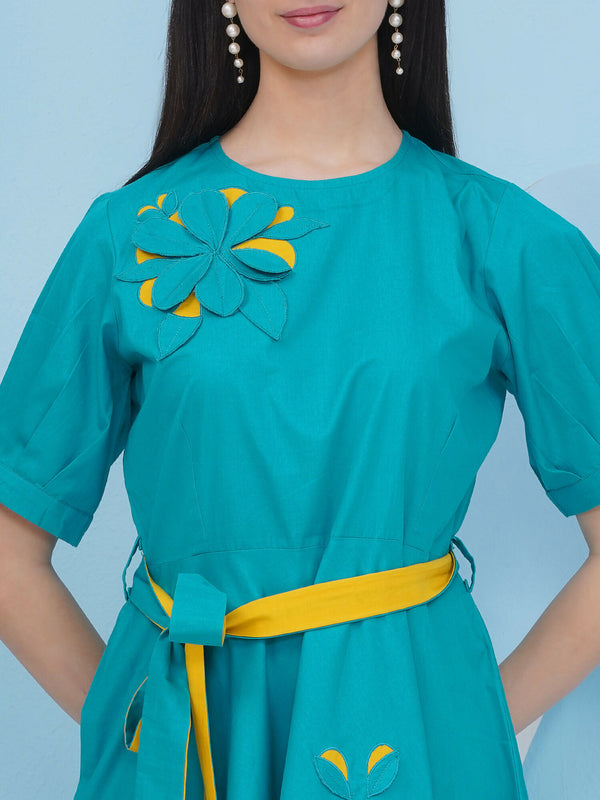 Joban Fashion Teal Blue Dress with BeltAbout the Product: No. of Components: 2 Top Fabric: Popline Bottom Fabric: NA Top Color: Teal Blue Bott...